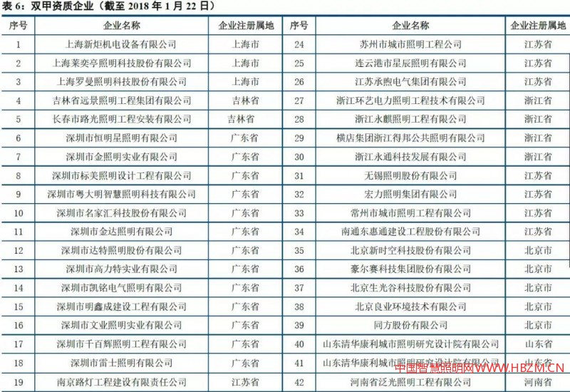 雙甲資質(zhì)住房和城鄉(xiāng)建設(shè)部為我國照明工程行業(yè)主管部門,對行業(yè)進(jìn)行資質(zhì)管理、政策制定和產(chǎn)業(yè)規(guī)劃。根據(jù)全國建筑市場監(jiān)管公共服務(wù)平臺的數(shù)據(jù),目前具備“城市及道路照明工程專業(yè)承包一級”資質(zhì)的企業(yè)達(dá)到 450 家,該資質(zhì)由企業(yè)所在的省住房和城建建設(shè)局頒發(fā),因而數(shù)量較多;而具備“照明工程設(shè)計專項甲級”資質(zhì)的企業(yè)僅有51家,該資質(zhì)由國家住建部審核頒發(fā),進(jìn)入門檻較高。截至1月22日,我國同時具備“城市及道路照明工程專業(yè)承包一級”和“照明工程設(shè)計專項甲級”資質(zhì)的企業(yè)(雙甲企業(yè))僅為46家,牌照較為稀缺。