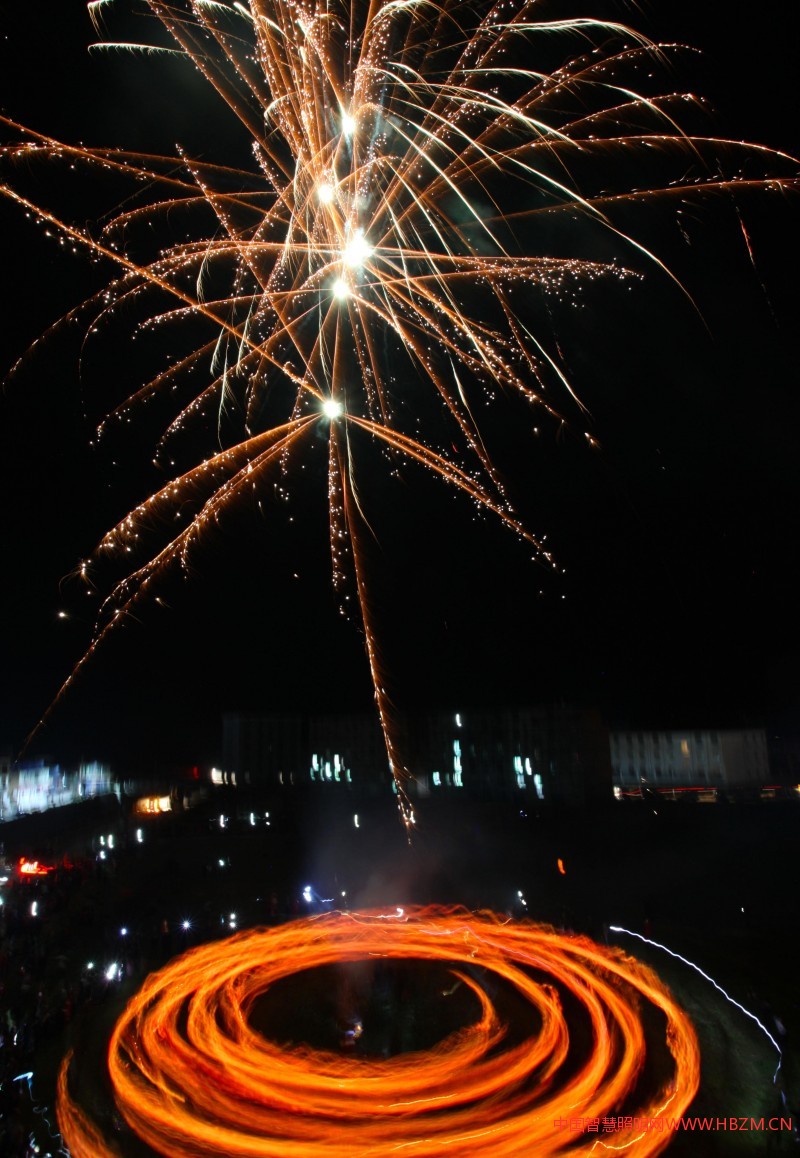江西石城縣是聞名國(guó)內(nèi)外的“燈彩藝術(shù)之鄉(xiāng)”,每年正月初七至初九,石城縣木蘭鄉(xiāng)板橋燈會(huì)同時(shí)在木蘭村和新河村上演,給人們送去平安、祝福。木蘭板橋燈會(huì)吸引許多村民參加,常常可見百米“長(zhǎng)龍”、千盞花燈的壯觀場(chǎng)面。圖為板橋燈猶如一條“盤龍”和煙火完美融合。