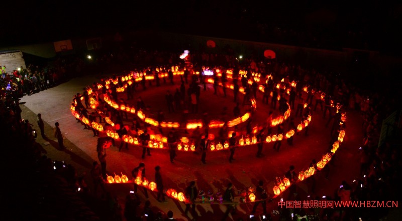 江西石城縣是聞名國內外的“燈彩藝術之鄉(xiāng)”,每年正月初七至初九,石城縣木蘭鄉(xiāng)板橋燈會同時在木蘭村和新河村上演,給人們送去平安、祝福。木蘭板橋燈會吸引許多村民參加,常??梢姲倜?ldquo;長龍”、千盞花燈的壯觀場面。圖為板橋燈猶如一條“盤龍”和煙火完美融合。