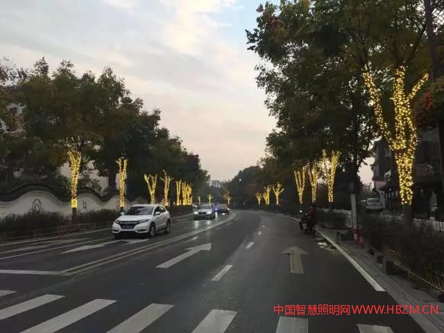 當夜幕降臨烏鎮(zhèn),鎮(zhèn)區(qū)子夜路和虹橋路上的兩百多棵行道樹會次第亮起。其實,發(fā)亮的是纏繞在樹上的LED燈帶,亮燈后呈現(xiàn)出一道火樹銀花的美景。